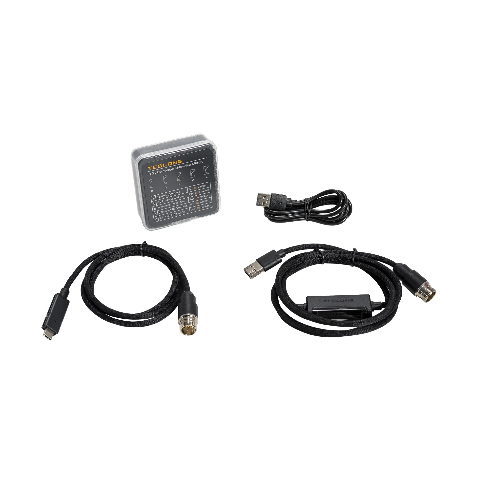 5″ monitor • 45″ flexible NTG500 probe • 5 side-view mirrors (.22/.243/.30/.38/.40) • 32 GB microSD (installed)USB-C charging cablemonitor stand • User manual.